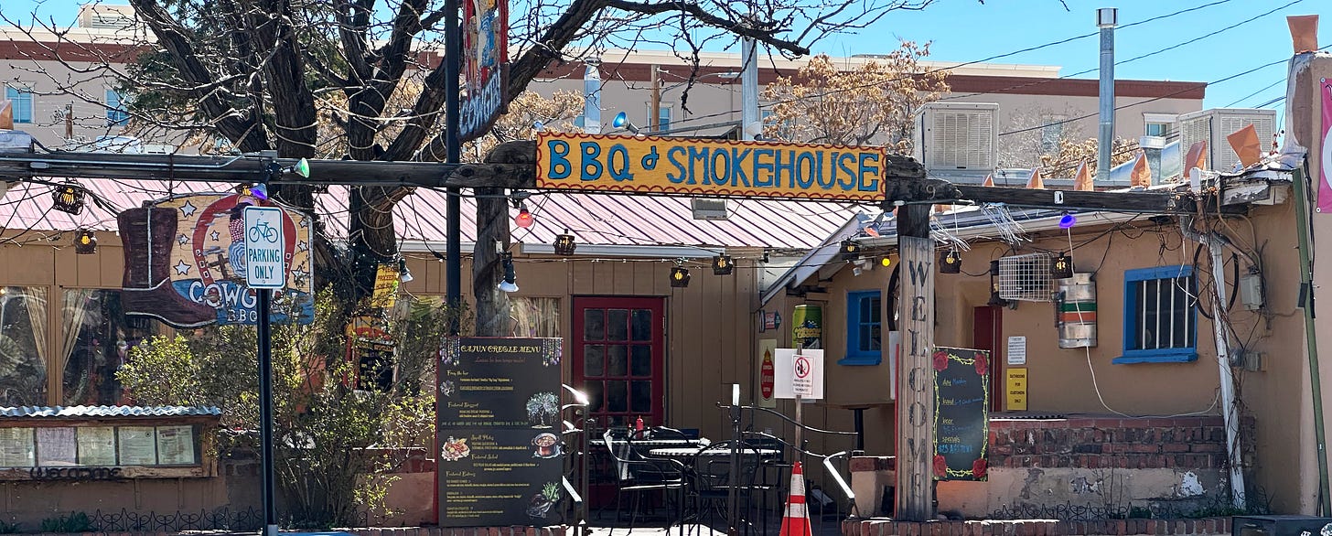 I walked past Cowgirl’s, a BBQ smokehouse, whose hand-painted sign always makes me smile.